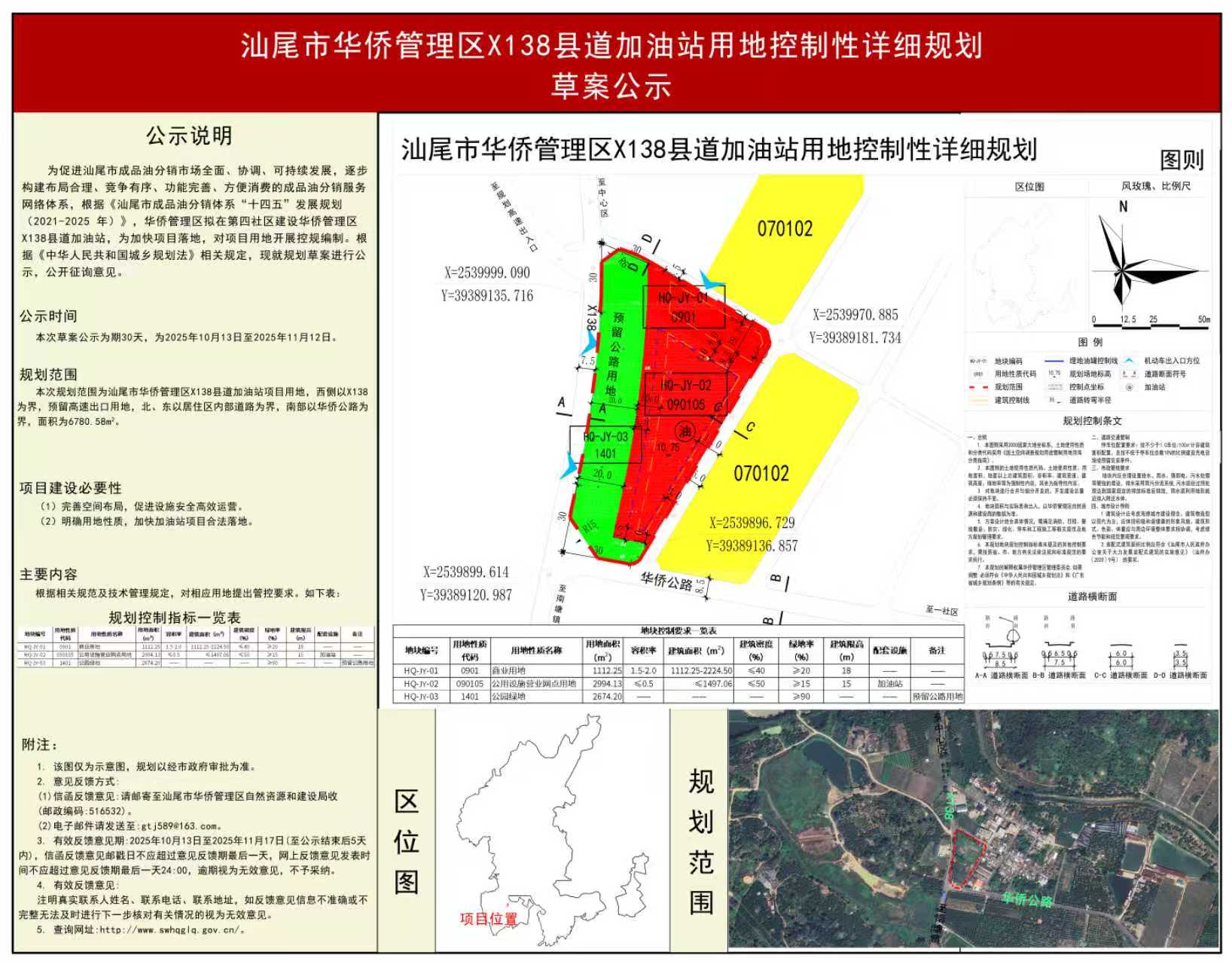 汕尾市华侨管理区x138县道加油站用地控制性详细规划草案公示