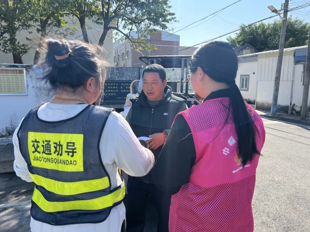 组织志愿者深入辖区主要路口、人流密集路段开展文明交通劝导。志愿者身着红马甲,引导行人与非机动车遵守交通信号、走斑马线、不闯红灯、不逆行,劝导不戴安全头盔、乱停乱放等不文明行为,以规范引导、暖心服务营造安全有序文明的道路交通环境。