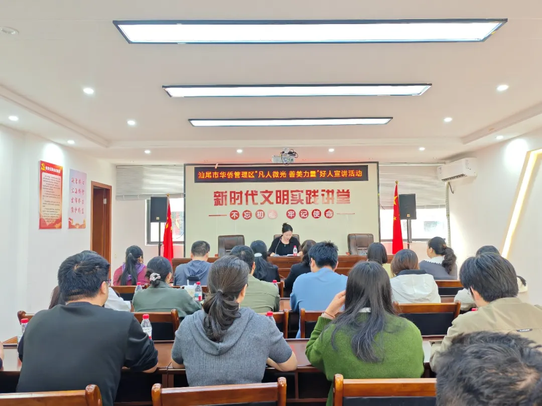 为大力弘扬崇德向善的文明风尚,充分发挥先进典型的示范引领作用,3月20日,汕尾市华侨管理区文明办在区新时代文明实践中心精心举办“凡人微光 善美力量”好人宣讲活动。本次活动特邀汕尾市“善美好人”“最美志愿者”“优秀讲解员”陈丽妃同志亲临现场,分享其深耕红色讲解一线、坚守初心使命的感人心路历程与先进事迹,辖区众多群众到场聆听学习,在平凡善举中感悟磅礴的善美力量。