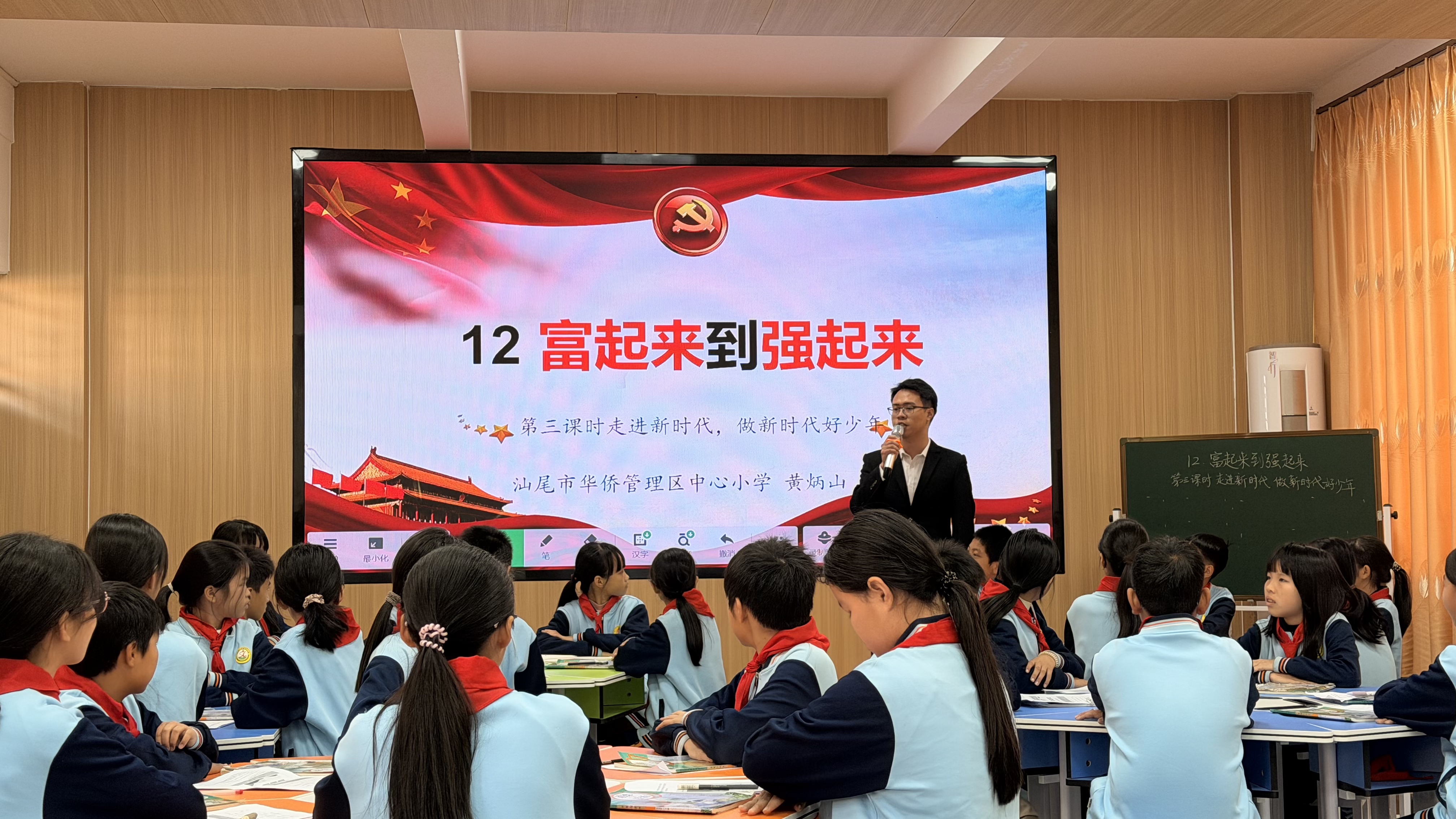 在广东省中小学蔡郭秦名师工作室暨广东省基础教育教研体系建设小学道法学科教研项目(汕尾)的悉心指导与大力支持下,汕尾市华侨管理区中心小学深入贯彻落实教育部关于加强新时代中小学思政课建设的意见要求,紧扣《广东省义务教育阶段课程实施办法(2024年版)》部署,以立德树人为根本任务,以课堂教学为主阵地,以多元实践为抓手,推动思政教育与各学科深度融合、与社会实践紧密衔接,走出了一条兼具校本特色与时代内涵的思政教育新路径,切实引导学生扣好人生第一粒扣子。