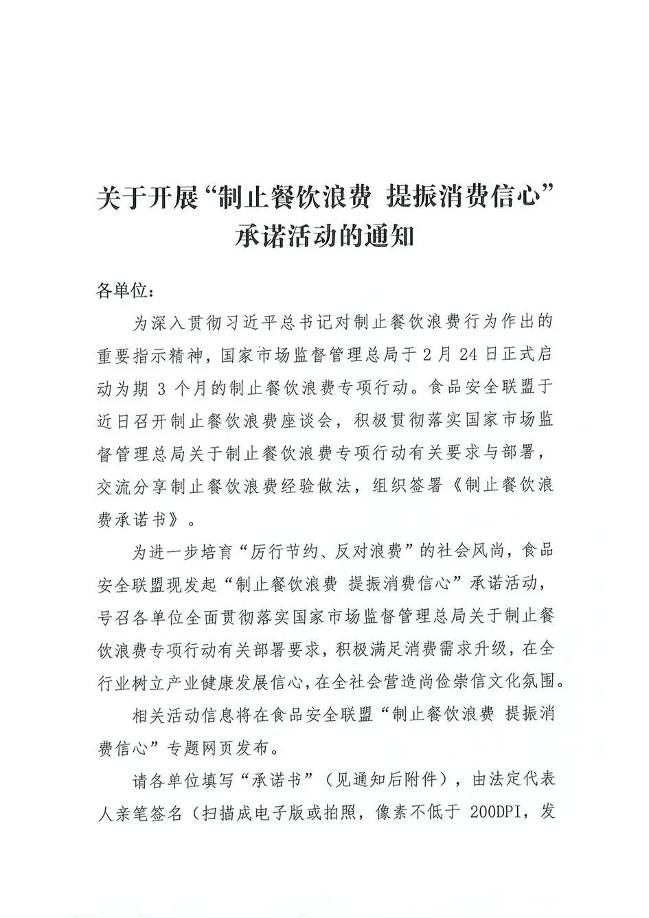 食品安全联盟在全国开展“制止餐饮浪费 提振消费信心” 我承诺活动