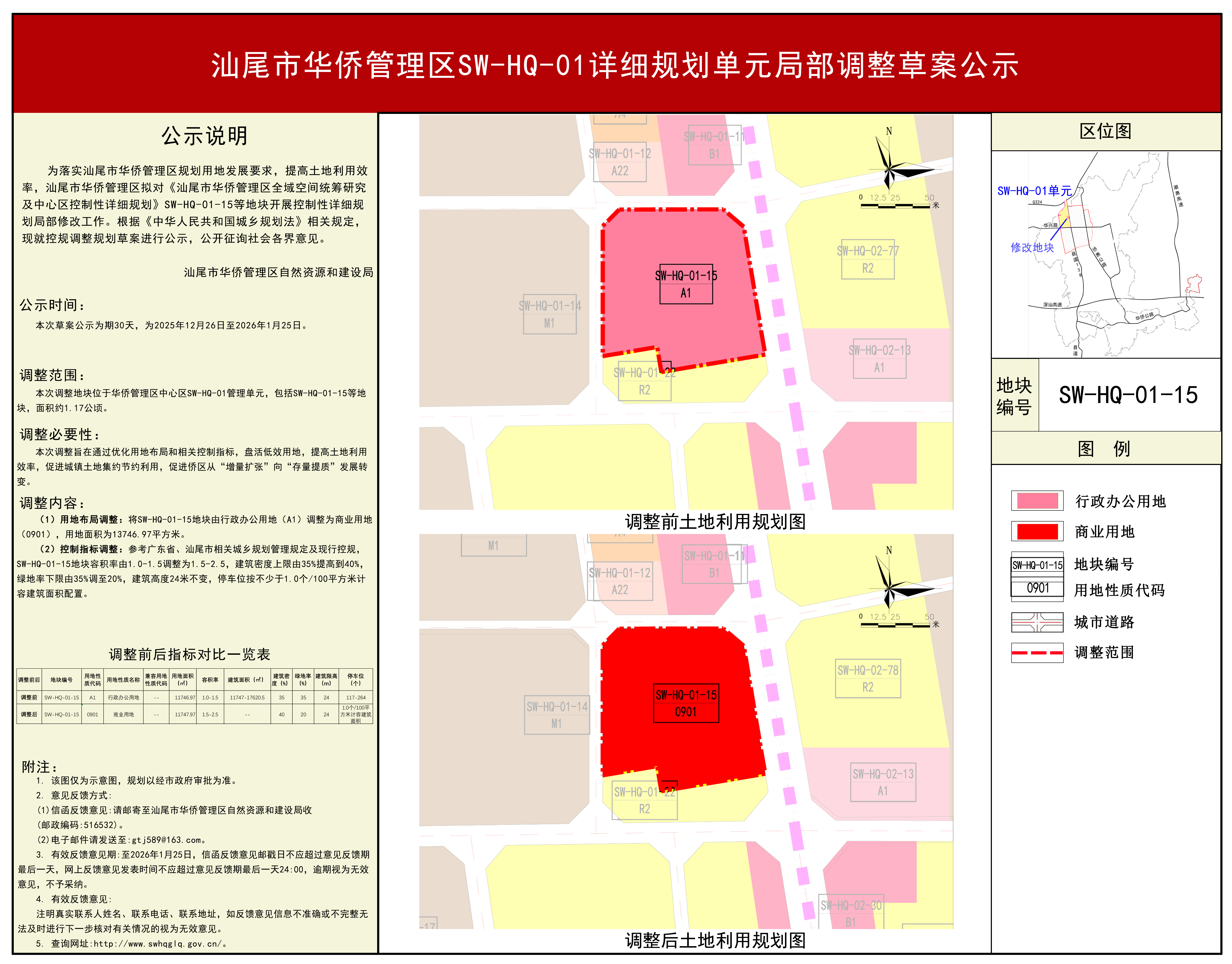 汕尾市华侨管理区SW-HQ-01详细规划单元局部调整草案公示
