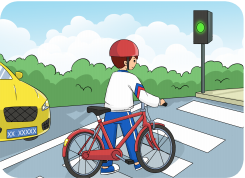 3、过街时要走画有斑马线的人行横道,也可以使用过街天桥、地下通道等设施过马路。