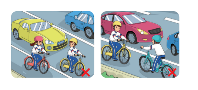 3、不要在机动车道上骑自行车,避免并排骑车或互相追逐,也不要逆向行驶、骑车载人。